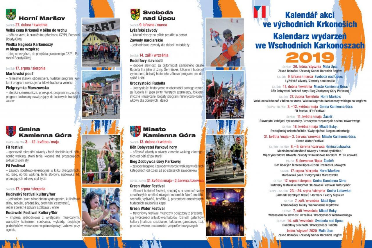 Projekt „Východní Krkonoše a Lubawská brána žijí kulturou a sportem“, č. CZ.11.4.120/0.0/0.0/16_026/0001078, je realizován v letech 2018-2020 a je spolufinancován z Programu INTERREG V – A ČR – Polsko. Náplní projektu je společná dvouletá realizace sportovních a kulturních aktivit v česko polském příhraničí. Další partneři projektu jsou: Žacléř, Svoboda nad Úpou, Mladé Buky, Horní Maršov, Lubawka, Kamienna Góra – město, Gmina Kamennia Góra.